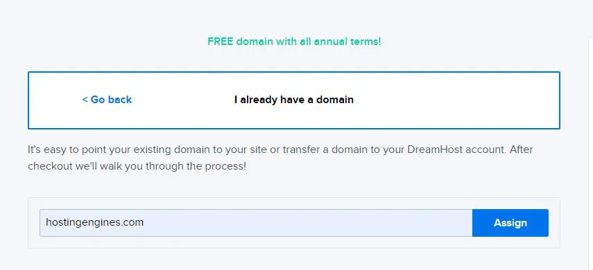 - I already have a domain; this will give you the option to transfer a domain name you own to DreamHost, or just add it to your website now and manage it on its old registrar.
